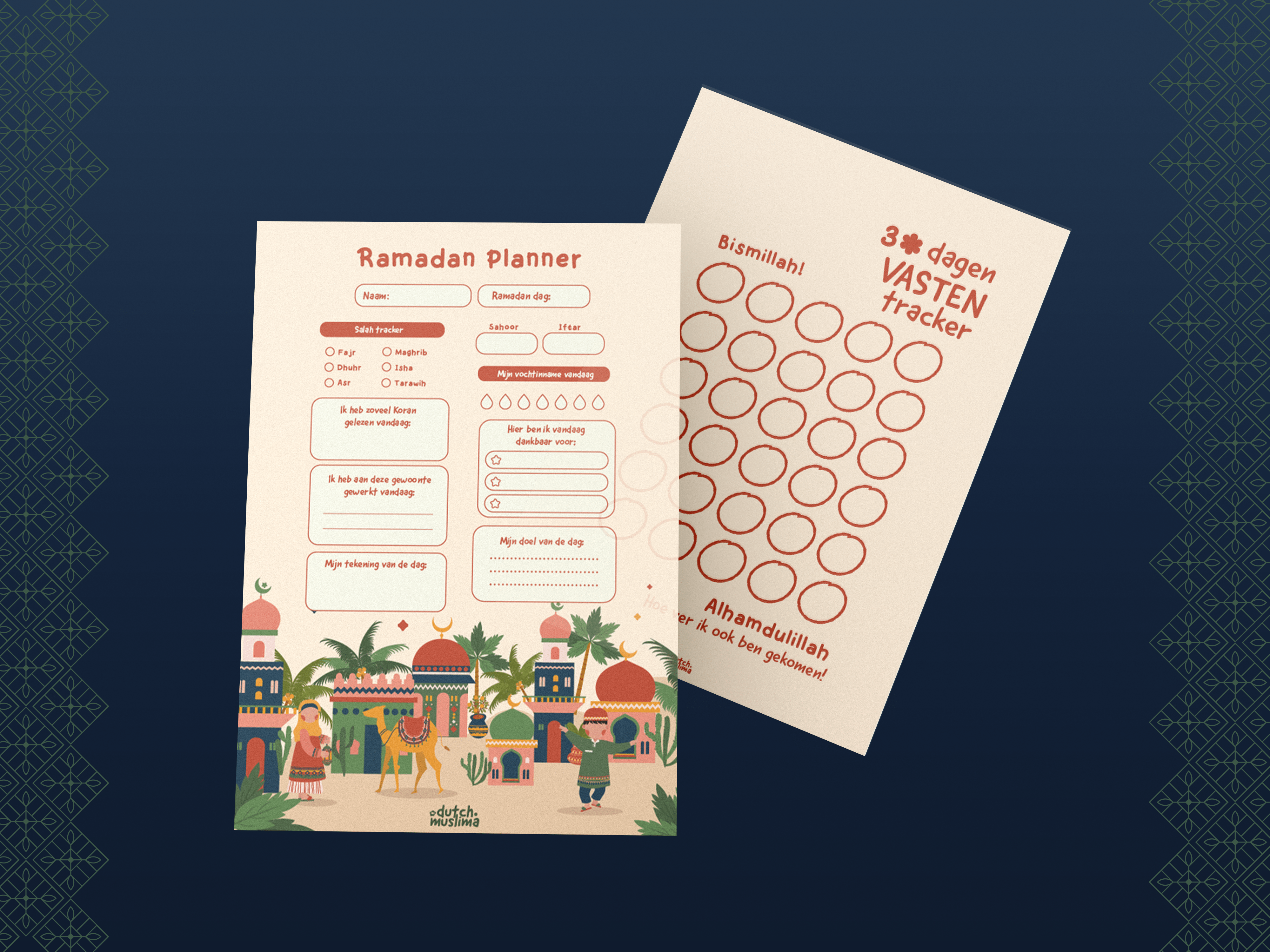 Tip van Flip: wij lamineren onze planners altijd en hangen deze in de Ramadan hoek of woonkamer, dit motiveert ze gedurende de dag om dingen in te vullen. Je kan ze dan met een whiteboard marker gebruiken en elk jaar opnieuw uit de kast halen!